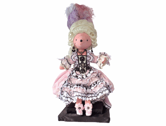 On February 11, 2012, the international blockbuster musical The Phantom of the Opera celebrated its astonishing 10,000th performance on Broadway. In honor of this unprecedented event, we proudly present Carlotta Giudicelli as she appears in the Il Muto scene. Our Carlotta bear is ready to take the stage as the resident diva of the Paris Opera in an exquisite Rococo gown. This formal French court attire is inspired by the original Tony Award-winning design by Maria Bjornson. Her pink embroidered organza dress is trimmed with lace, black jet and Austrian crystal. The boned bodice is also decorated with glass, crystal and jet. Her over-robe is made with pink-beaded silk chiffon and trimmed with painted lace, black jet and Austrian crystal. Carlotta’s delicate shoes are handmade, beaded with silk and finished with black lacquer heels. She wears handmade, feathered jewelry made to match the delicate details on her bodice. The entire outfit is literally topped off with a formal white wig covered in platinum blonde curls and festooned with ostrich feathers. Dressed to impress, our Carlotta bear is ready to become the star of your house.