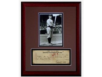 Detroit Tigers Ty Cobb picture with repligraph of signed check. This item is mounted and framed in cherry wood.