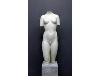 Sculpture of a female torso. The sculpture is slip cast porcelain on a limestone base.