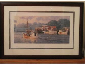 Off Mobjack Bay, Matthews Count, VA by John Morton Barber. Limited edition collector print, signed and numbered (335/950) by the artist; Triple matted and framed in a beautiful mahogany frame with museum quality glass. Size 24x37"