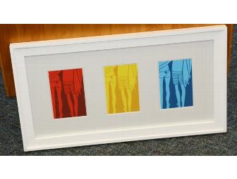 Three 4 by 6 blue, yellow and red Summer Love giclee prints on watercolor paper. Retail value $45.00 Frame value $ 20.00