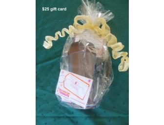 This lot is donated by VNA of Middlesex-East www.vnaofme.org and contains a $25 Dunkin Donuts gift card and a travel mug.