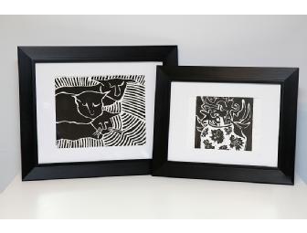 "My Grandmother's Vase and Eliot's Flowers" 10" x 10" black and white linoleum print