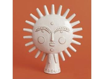 This piece is part of the Jonathan Adler Utopia Collection which consists of playful and chic vases, vessels and objects that are hand crafted by skilled artisans in Peru. The Utopia Sun is molded from high-fired, brown stoneware and painted with a sheer white glaze. The Utopia Sun adds a little whimsy to any room it's placed in!