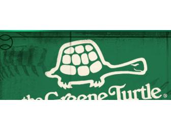 Gift Certificate for Happy Hour Party at the Greene Turtle for 15+ people, including bone-in wings, pork sliders, caesar salad, pretzels con queso, & discount drinks. $4 16oz rail drinks, $1 sodas, $2.50 domestic, and $3.99 import bottles. You will also receive a coupon for a free t-shirt with the purchase of $25 or more.