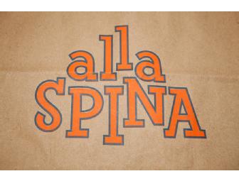 This auction item also includes a gift bag with 2 Alla Spina t-shirts, 2 glasses, 3 coasters and 2 bottles of G. Menabrea e Figli amber beer from Italy.