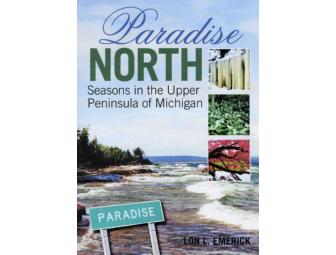 Autographed Copy of Paradise North - Seasons in the Upper Peninsula of Michigan! This is the latest UP book by local author Lon Emerick, with stunning color photographs by Marquette artist/songwriter/sculptor Mark Mitchell and others. In 32 short chapters, including "Cool, Clear Water: about the Yellow Dog Watershed, Lon shares more of his "love affair" with the Upper Peninsula. A finalist in the Foreword Book of the Year Awards and reviewed by Lake Superior Magazine.