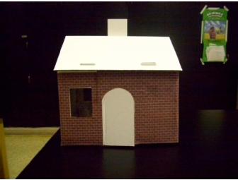 The 8th grade students worked in groups, taking their knowledge of electricity learned in science class, & created dollhouses with working lights. The houses are completely designed by the 8th grade students. The dollhouses are approximately 16" high x 15" long x 13" wide & are made from recycled cardboard. The dollhouses are wired with a switch & lightbulb that is battery operated.