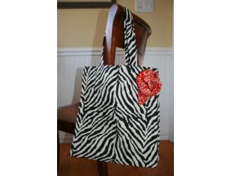 Beautiful handmade cotton shopping bag/tote fully lined and decorated with removable flower. Fun and useful for books, groceries, beach, the pool, or whatever you may need!