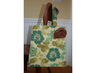 Beautiful handmade cotton shopping bag/tote fully lined and decorated with removable flower. Fun and useful for books, groceries, beach, the pool, or whatever you may need!