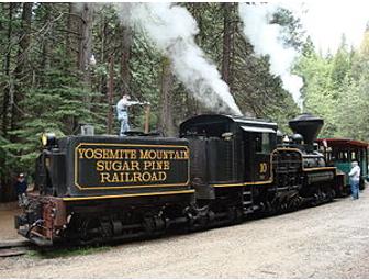 Enjoy a ride for two adults and two children into history on Yosemite Mountain Sugar Pine Railroad's Logger Steam Train: a one-hour narrated daytime excursion through the magnificent Sierra National Forest.