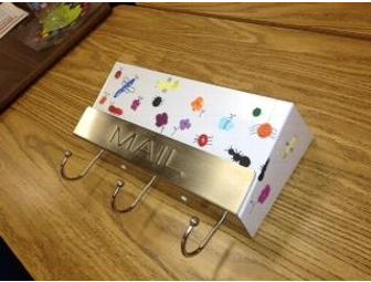 The mailbox is a perfect size to store papers, artwork, or anything your child brings home from school! AND there are 3 hooks on the bottom just waiting to be a quick resting spot for keys, or backpacks, or whatever you need to hang!