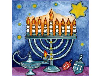 Get a head start on your holiday planning with this unique Chanukah gift/decor package. Includes: menorah, Chanukah themed mugs your children can color in with special markers (supplied), Dreidel-shaped deck of playing cards, inflatable dreidel, and Chanukah banner your children can fill in with their favorite crayon colors.