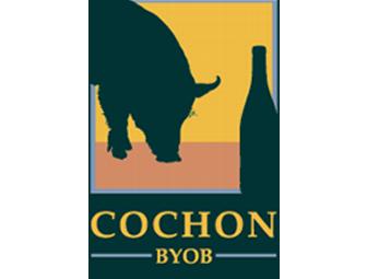Enjoy dinner for two at Cochon, a casual, French-inspired BYOB.