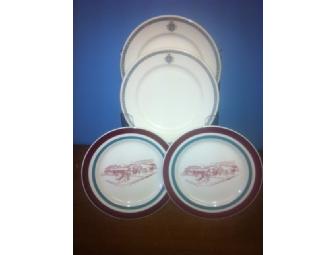 1 Set of 4 plates, two with the school building and 2 with the light blue stripe around the outside edge.