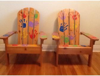 This one is too cute!!! A kids size Adirondack chair decorated with the handprints of the kindergarten class.