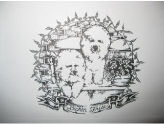 Notecards are 5x7" on white notecard paper and printed in black ink. There is an embossed 3/4" boarder giving the notecard a framed look.