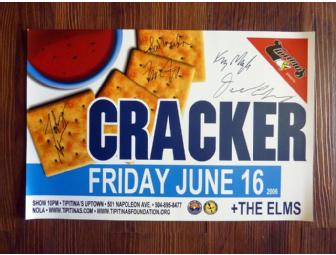 Signed Tipitina's Cracker poster from June 16, 2006 show. Signed by all band members (and what appears to be one signature from opening band, The Elms). Condition: very good to excellent. Measures approximately 12"x18".