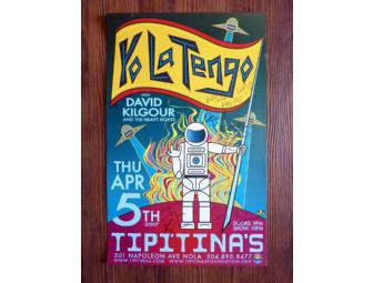 Signed Tipitina's poster of Yo La Tengo with David Kilgour and the Heavy Eights from April 5, 2007 show. In Very Good to Excellent condition and signed by band members. Measures approximately 11x18".