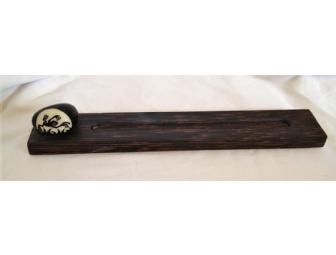 Unique incense burner made from chonta hardwood and the tagua nut. Each one hand-made by the talented Robolina family of artisans, near Quito, Ecuador. This tagua nut is carbed with the rainforest frog.