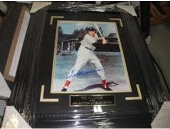 Ted Williams has autographed this 11x14 photo. It has been forensically authenticated. The photo comes custom mat and framed.