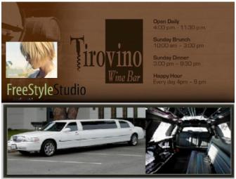 Get dolled up with a wash and style hair do at She's Lifestyle Salon on Pico, then pick up your honey and 4 other BFFs in a stretch limo and head to the wonderful Tirovino Wine Bar & Restaurant on Melrose for a scrumptious dinner and yummy wine. Your limo awaits you to take you where your heart desires.... under 3 hours anyways.... (Dinner Gift Certificate is $300).