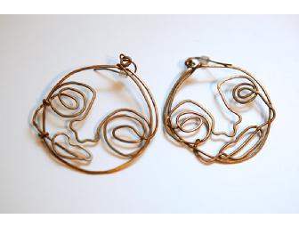 These are brass wire face earrings- delightful little portraits that are shaped by hand from 18 gauge non-tarnish brass wire and hammered for strength. The brass has a beautiful golden sheen that catches sunlight very nicely. Each face is one of a kind and they all have their own personality. They cast wondreful shadows that dance upon your neck as you go about your day...