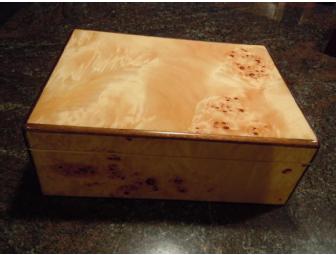 Gentlemen, store your valuables in style! This item is a high quality burlwood men's jewel box measuring 10-1/2" wide by 7-1/2" long by 2-1/2"deep, with plush felt lining in inidividual compartments. Classy and spacious, this item will only enhance the fine decor of your dresser top.