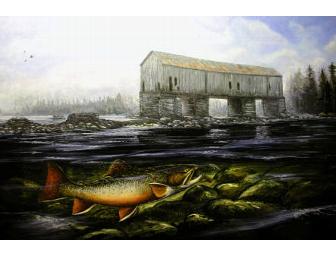 A favorite destination for generations of fisherman, Lower Dam on the Rapid River has provided countless memories over the years. The dam is now gone but it has been immortalized in a limited-edition print of the original oil painting by David A. Footer, so it shall live on not only in memories of those who experienced its beauty but also for generations to come.