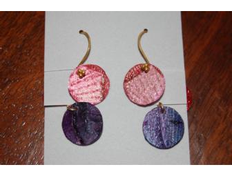 Margaret Dorfman of Turning Leaf Handmade has made these beautiful Vegetable Parchment Earrings from fresh fruit and vegetables that is cured, pressed, aged, and dried to a translucent, parchment-like sheet. The parchments are fused to hand-shaped copper disks and suspended from 24kt gold vermeil earring hooks.