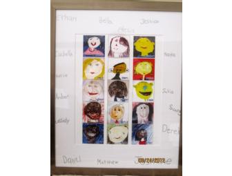 We took the self portraits of each 1st grader and put them into 2 beautiful frames. Then we had each child sign the matting. This is a precious keepsake.
