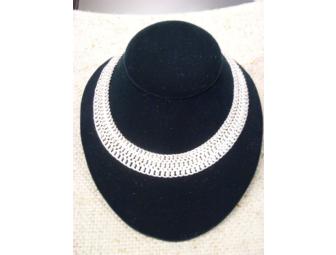 .925 sterling silver estate necklace made in Mexico. Approximately 3/4" in width and 16 1/2" in length. Weight of necklace is over 70 pennyweight (approximately 3 1/2 ounces).