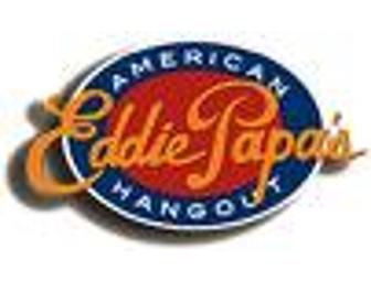 $30 Gift Certificate to Eddie Papa's American Hangout restaurant with locations in Pleasanton and Livermore. Eddie Papa's serves true blue American comfort food, using the finest quality ingredients.