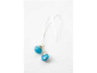 Unique sterling silver earwire and dyed turquoise earrings. Hand-wrapped wire.
