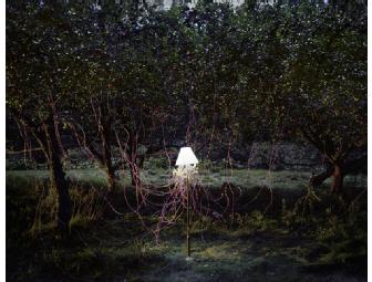 Here, Charland took advantage of the acid in the flesh of an apple to set up this ethereal photo. He hooked wires into about 300 apples that were still connected to their trees and found that it only took about 10 apples to power 30 small LED lights under a lampshade. He then got the shot using a four-hour exposure.