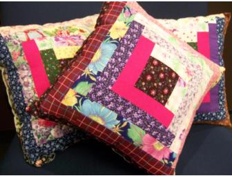 A Pair of Unique Colorful Log Cabin Quilted Throw Pillows.