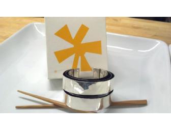 A stunning sterling silver cuff, this vintage handmade bracelet was designed in 1973. Showing that good taste never goes out of style, this bracelet goes as beautifully with a tailored blouse and jeans jacket as with an evening gown--which you'll need if you also purchase our package to the Emmy Awards! Shipping and handling not included.