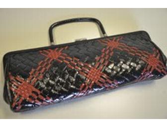 Rock your next evening event with this Hobo International 12" red and black clutch. Both eye catching and fun, this clutch has nice stitching details and hardware, interior credit card slots and zippered pocket. Comes with cloth storage bag. Shipping and handling not included.