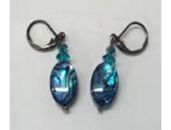 Beautiful blue earrings with a mother-of-pearl design--ready to be dressed up or dressed down. Enjoy!