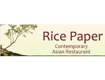 $30 gift certificate to Rice Paper. Rice Paper is a contemporary Asian restaurant near 50th and France in Edina.