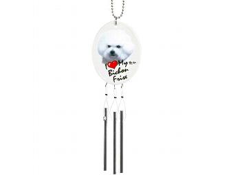 This beautifully designed car wind chime featuring a ceramic "I Love My Bichon Frise" double-sided disc delivers a pleasant tinkling sound that won't interfere with your hearing while driving. It is the perfect length for your rear view mirror—easily attached with the included metal ball chain
