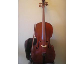 Have you always wanted to play the cello? Here is a 3/4-size used cello and bow in a soft canvas case. Some cosmetic wear.