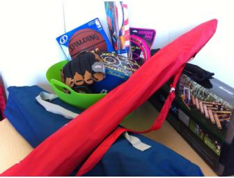 Strap up, lace up and stretch out – you’re gearing up for a home game. No sports inventory is complete without the contents of this Sports basket presented by the 2nd grade. Whether you’re setting up a family game of croquet on the lawn or shooting hoops on the driveway, you have to play to win. Get all the necessary equipment to play ball and win it all! This basket contains: