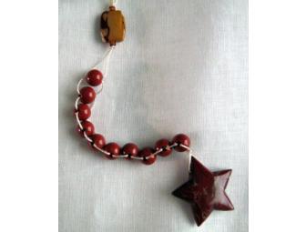 This strand of beads is used to count blessings. It is made of round beads strung so that when you pull a bead it leaves a space. This strand is made of 8mm red iron jasper beads.It comes mounted on a card that explains how to use it. The word bead comes from the Anglo-Saxon word 'bede' which means to pray. Today, prayer beads are used by 2/3 of the world's religions.