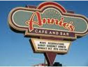 Enjoy $20 gift certificate to locally famous Annie's Cafe and Bar