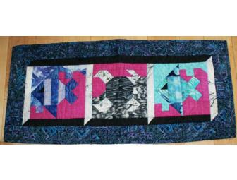 This is a beautiful handmade quilt that features 2 fish and 1 turtle, in multi-vibrant colors.