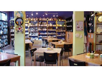 Gift Card ($25) to Ceramics in the City - where you particiapte in an art project: paint pottery, fuse glass, silver jewelry, fingerprint jewelry and canvas painting. Located at 1912 Pearl St.