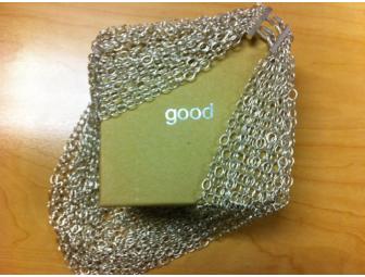 Good, a boutique on Charles Street in Boston, has generously donated this beautiful silvertone layered chain necklace to our auction. Light as a feather yet substantial. Hard to capture its full beauty in a photo. Shipping and handling not included.