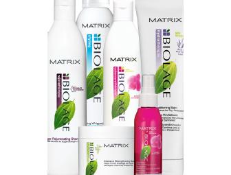 High end Biolage products: Shampoo, Detangling conditioner, and Mousse.