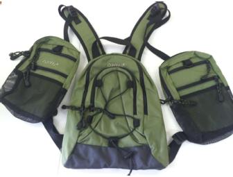 Fully adjustable fly fishing backpack and dual front chest pack compartments to handle all your gear for a full day on the water. Two front stretch mesh pockets. Breathable air mesh on the padded back panels of chest pack and backpack for ventilation. Lots of interior pockets in chest pack and backpack for organization and storage of your gear.